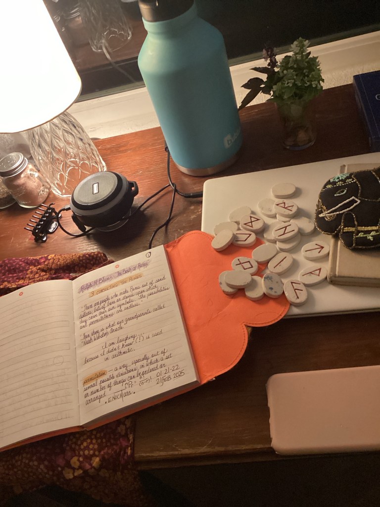 On the 21 of February of 2025 I placed Botannical Inspirations by Lynn Araujo into my very bright pink, fuzzy book which houses living quotes of Ralph H. Blum from my oldest owned rune set: