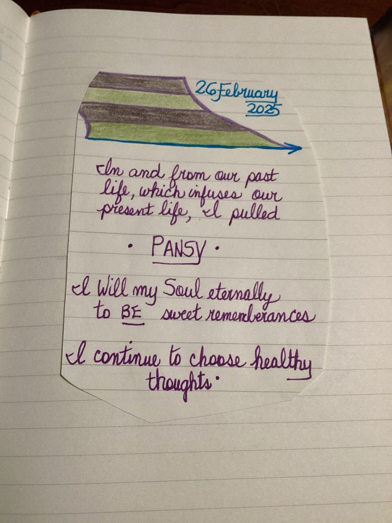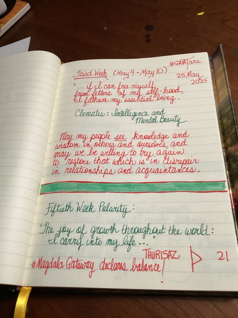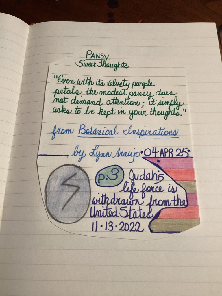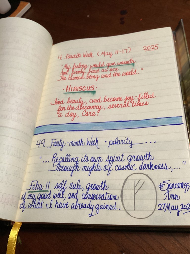 On the 21 of February of 2025 I placed Botannical Inspirations by Lynn Araujo into my very bright pink, fuzzy book which houses living quotes of Ralph H. Blum from my oldest owned rune set:
