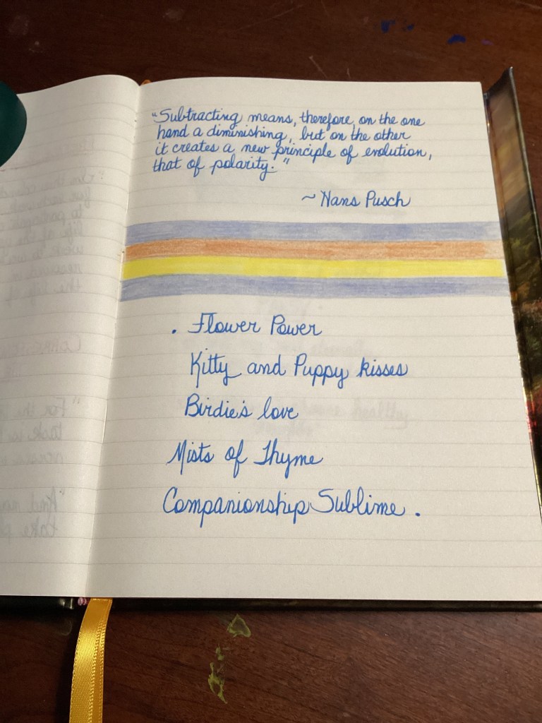 I chose this notebook so I can walk the garden path and produce healing. COTS is full of healing and wisdom nuggets year ‘round that protect my aging mind from the cancers eating away at this society and its history.