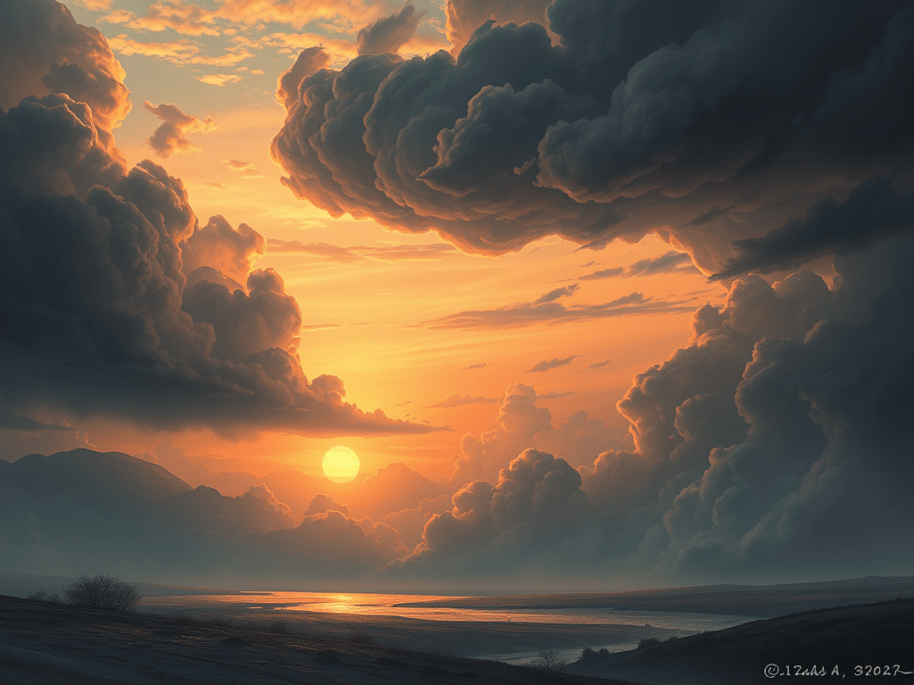 Create a highly detailed and visually striking featured image that encapsulates the themes of personal reflection, chaos, and spirituality from “The Calendar of the Soul” by Rudolf Steiner. The image should depict a serene landscape with contrasting elements symbolizing inner turmoil, like a peaceful sunrise juxtaposed with dark, swirling clouds. Include subtle runes in the foreground to represent the mystical aspects of the blog post. Use soft, ambient lighting to create a tranquil yet thought-provoking atmosphere. Emphasize sharp focus and high resolution for a captivating visual experience.
